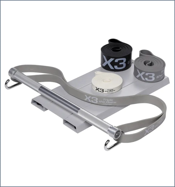The final piece of the X3 puzzle was custom engineering superior resistance bands, the strongest of which is capable of offering over 600 pounds of resistance.
