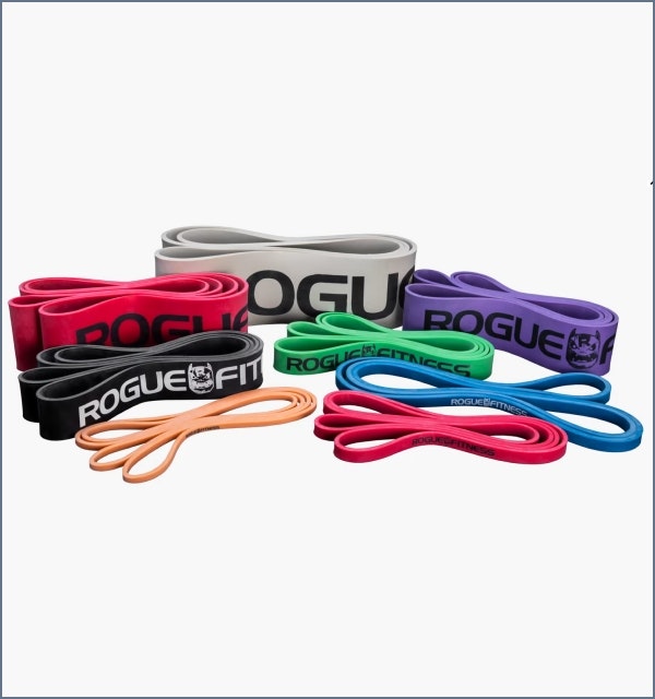 Rogue’s Monster Bands are made of natural latex rubber, and are available in two different lengths—a 12" version which is great for glute bridges, and a 41" long version to help with pull-ups and pretty much everything else.
