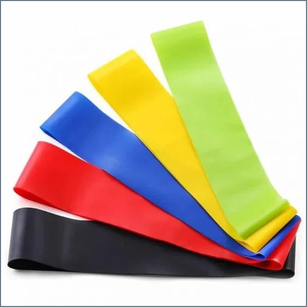 Latex bands typically come in packs of three or more and offer resistance levels ranging from extra light to extra heavy. They also come in a variety of lengths. In some instances, short bands are used for lower body exercises, and longer bands are used for upper body exercises. The lightest latex bands are popular for rehab exercises and warm ups.